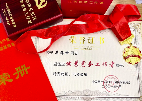 有信达集团吴世海同志被中国共产党深圳市盐田区委员会授予“盐田区优秀党务工作者”称号。吴世海同志现任有信达支部书记,他始终严格以共产党员的标准要求自己。在日常工作中,他兢兢业业,恪尽职守,坚持公正公平,在党务工作中严格遵守党的纪律,充分发挥模范带头作用,始终在思想和行动...