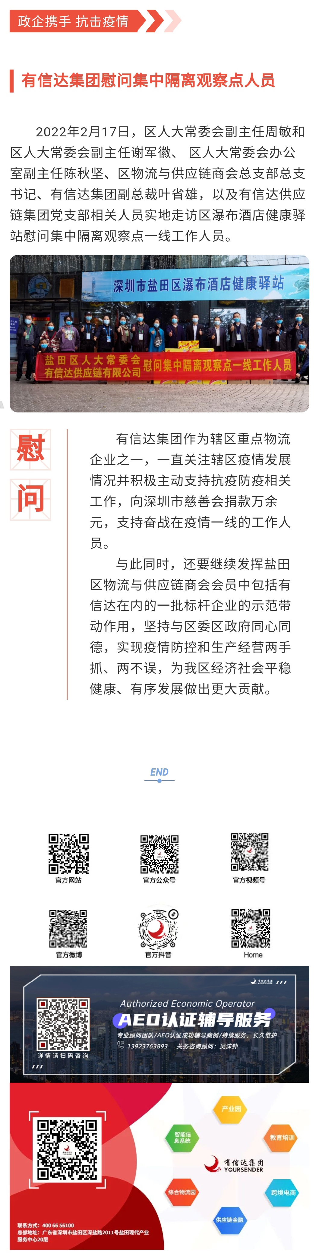 政企携手 抗击疫情 | 有信达集团慰问集中隔离观察点人员